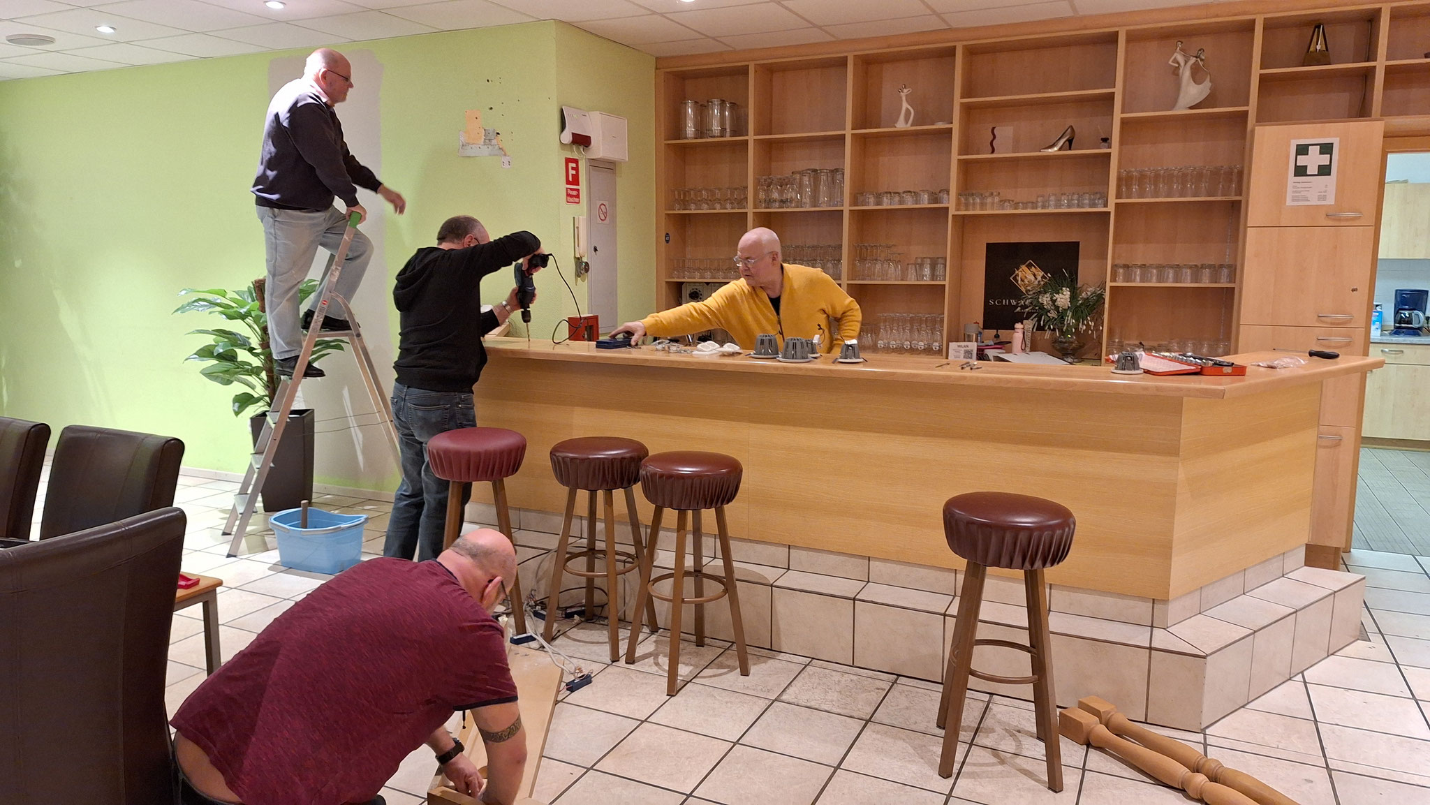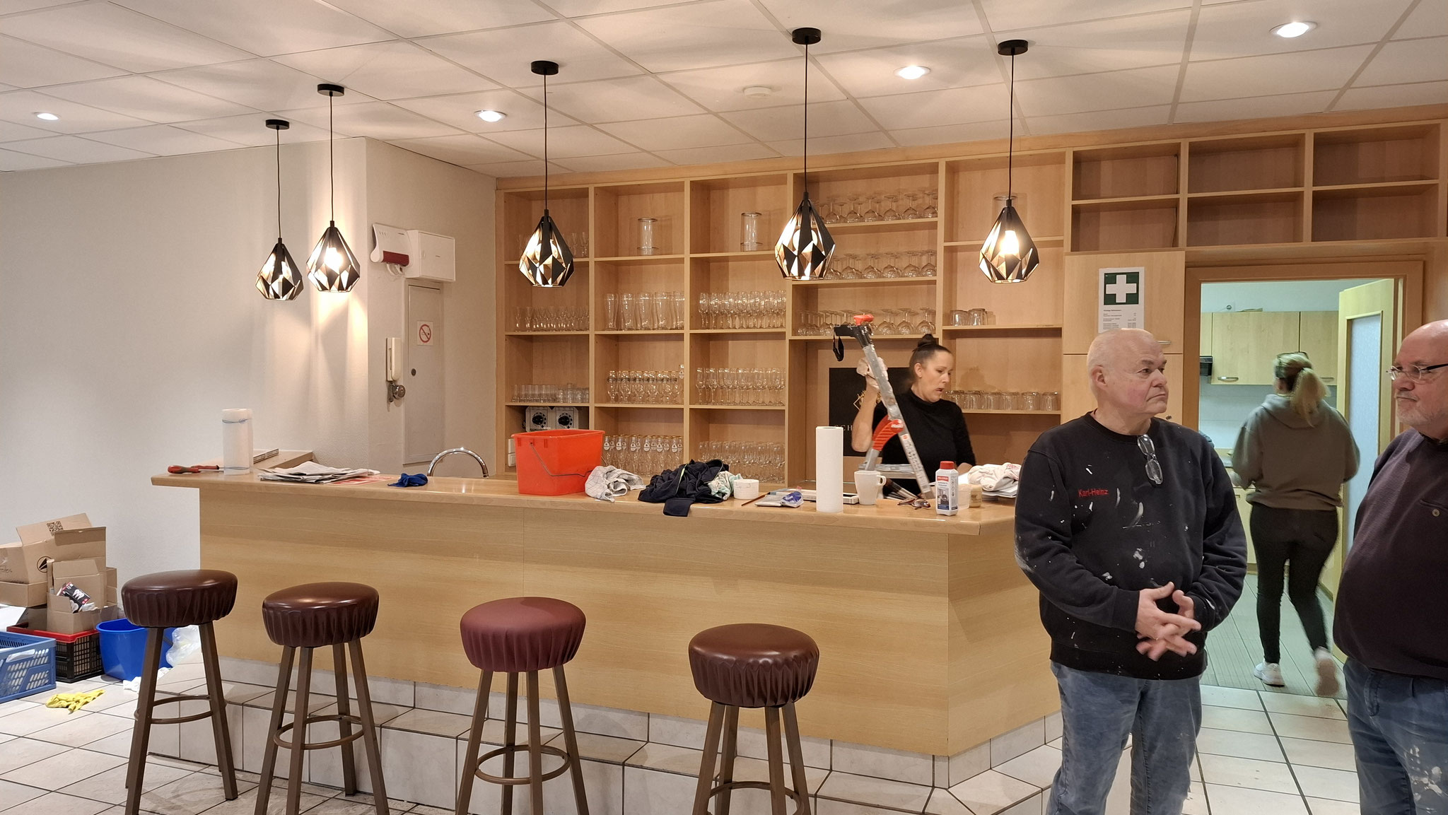 Mit tatkräftiger Unterstützung haben wir den Eingangsbereich, den Bar- und Aufenthaltsraum sowie zwei Umkleideräume gestrichen und damit eine frische und moderne Atmosphäre geschaffen. Außerdem wurde ein Großteil der Bestuhlung professionell gereinigt und imprägniert. Über dem Bartresen wurde eine neue Beleuchtung installiert.