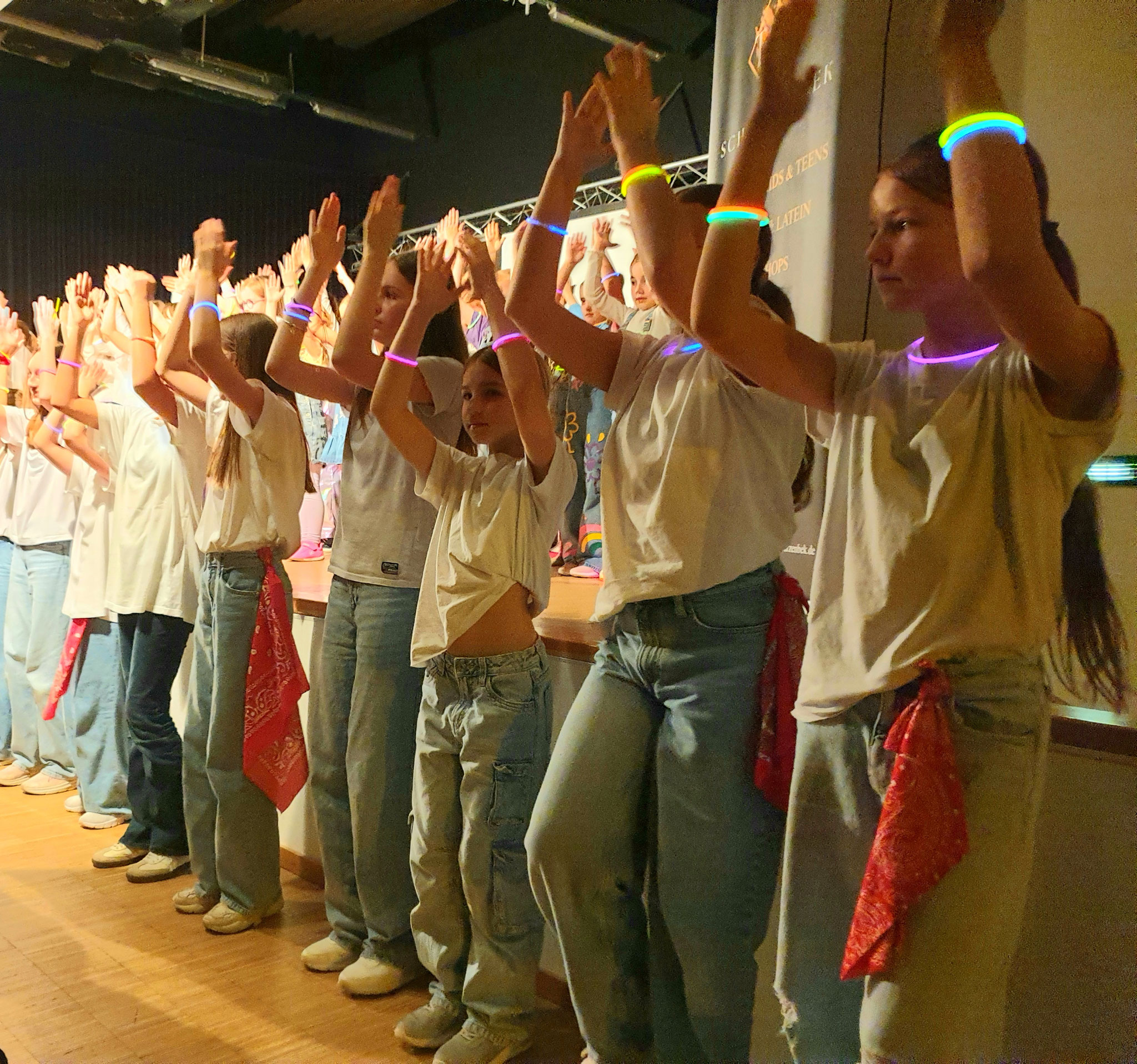 Am gestrigen Donnerstag fand die jährliche Weihnachtsshow der Kids und Teens unserer langjährigen Tanzpädagogin Bärbel Decker statt. Erstmalig fand diese Veranstaltung aufgrund des großen Interesses der Familien der Kinder in der Aula des Gymnasiums statt. 450 Familienangehörige waren gekommen, um die 130 Kinder und Jugendliche im Alter von 3 bis 22 Jahren tanzen zu sehen und es war wieder eine besondere Show für Klein und Groß. In den letzten Wochen war die Aufregung deutlich zu spüren und es wurde geprobt und getanzt, was das Zeug hielt. Die Anstrengungen und die Aufregung der kleinen Tänzer:innen wurde mit einem riesigen Beifall belohnt und die