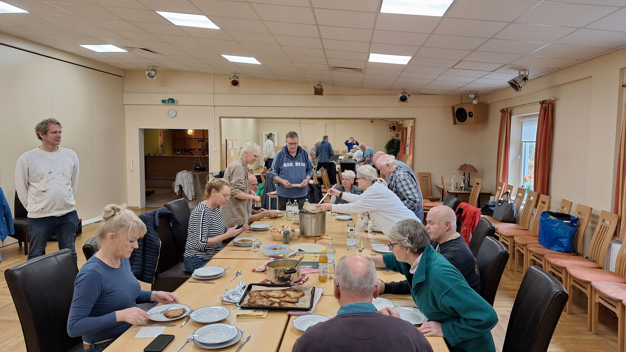 Nach der Arbeit haben sich die Teilnehmer versammelt und auf das Geleistete mit einem Sekt angestoßen. An einem zusammengestellten Buffet mit Speisen und Getränken haben wir noch einige Zeit gemeinsam verbracht, beim Essen und Trinken, Klönen und Gesprächen.
