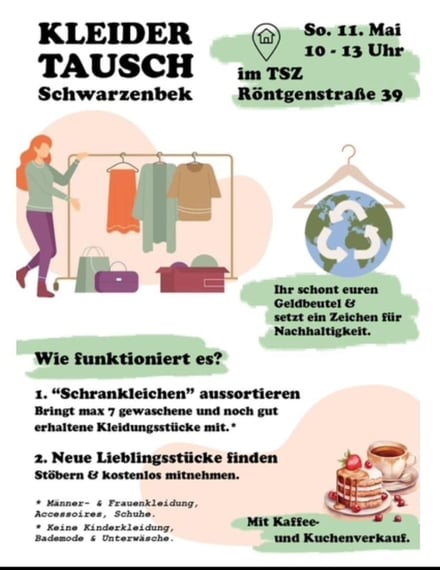 sie am Sonntag, 11. Mai, 10 bis 13 Uhr zu einem Kleidertausch ins Tanzsportzentrum in der Röntgenstraße in Schwarzenbek bringen.