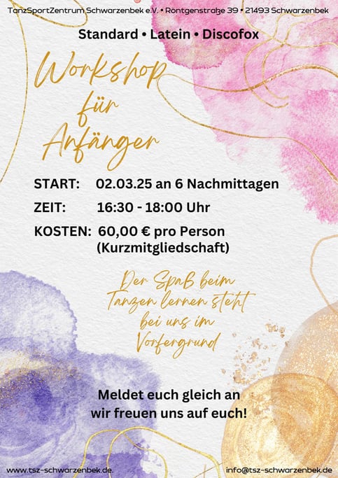 Melden Sie sich gemeinsam mit Ihrem Partner oder Ihrer Partnerin ganz einfach über unser Kontaktformular oder per E-Mail an info@tsz-schwarzenbek.de an.